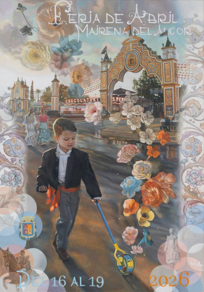 Digitalización del cartel anunciador de la Feria de Mairena del Alcor 2026, obra del pintor Pedro Castro Rojas.