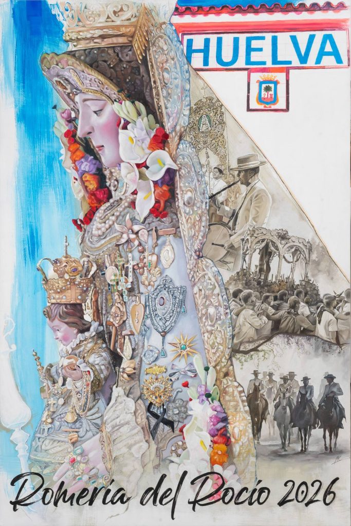 Digitalización del cartel anunciador de la romería del Rocío 2026 de la Hermandad del Rocío de Huelva, obra del pintor José Cabrera Lasso de la Vega.