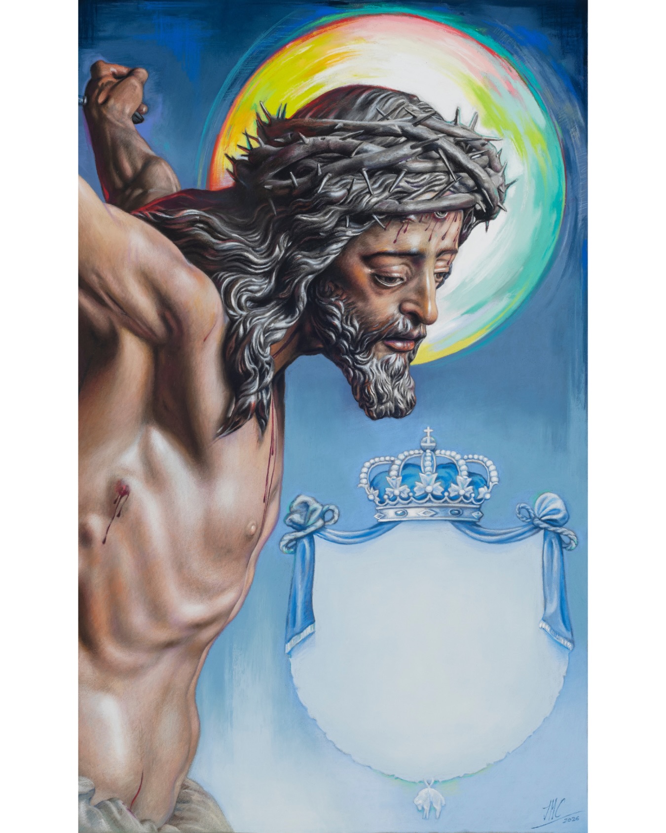Digitalización de la papeleta del vía crucis extraordinario dela Hermandad de Montserrat de Sevilla, obra del pintor José Cabrera Lasso de la Vega.