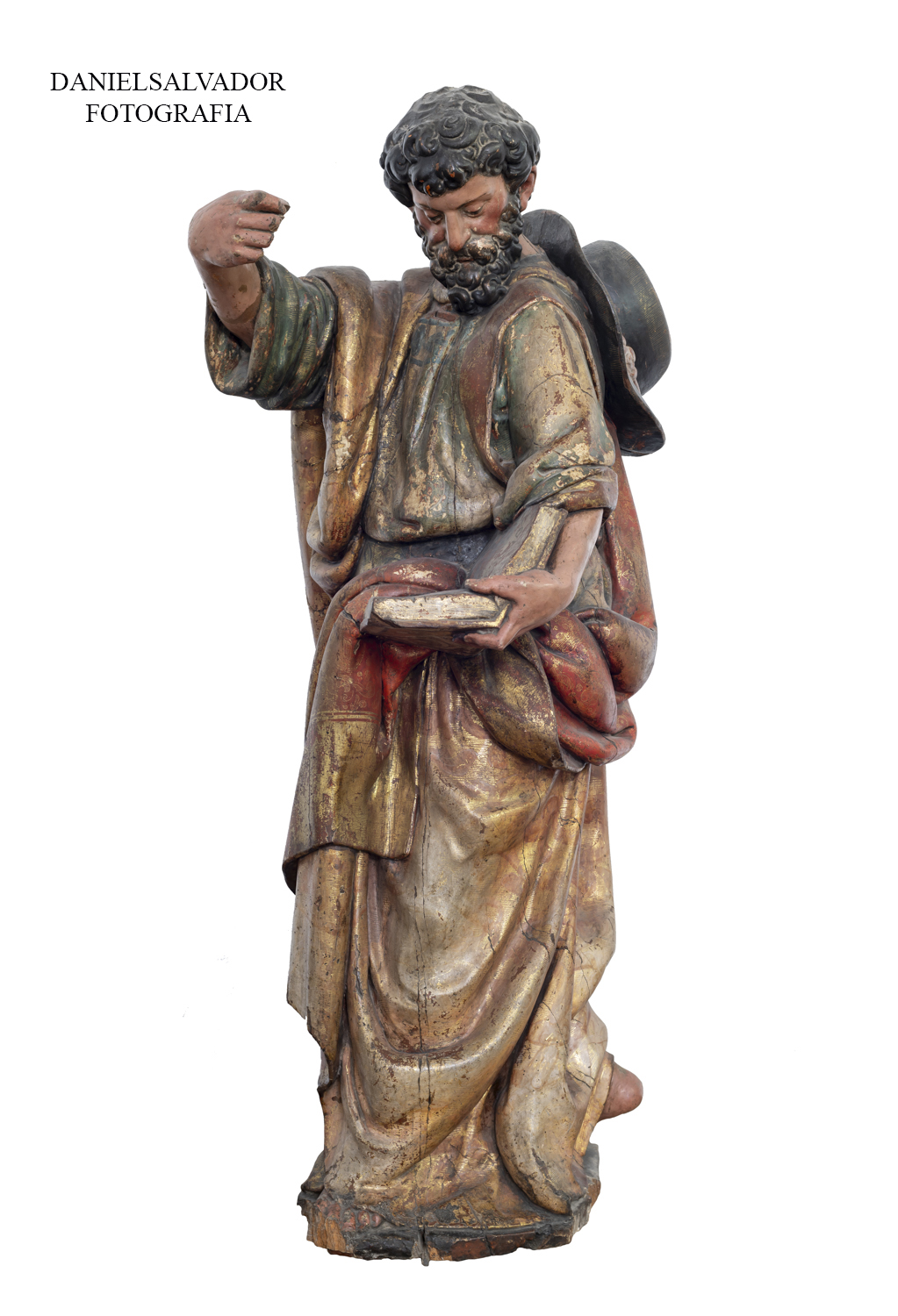 Madera tallada, dorada y policromada. 122 x44 x 63 cm