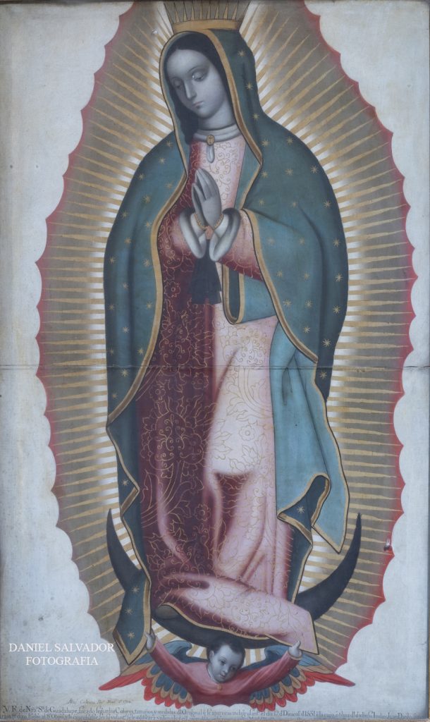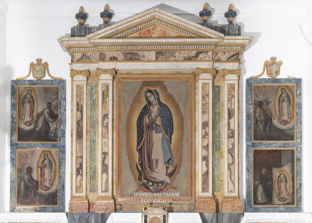 Retablo de la Virgen de Guadalupe. h. 1754-1757. Castañares de Rioja (La Rioja). Iglesia parroquial de Nuestra Señora de la Natividad. Pintura de Miguel Cabrera y retablo anónimo.