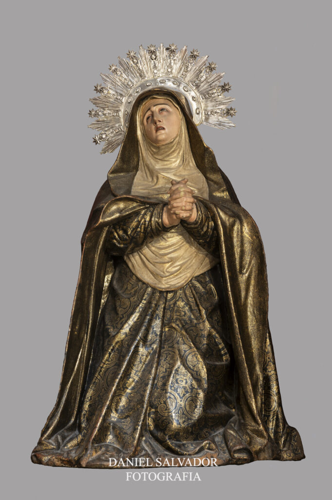 Nuestra Señora de la Antigua, Siete Dolores y Compasión. Pedro Roldán (Atribución). Tercer cuarto del siglo XVII. Real Parroquia de Santa María Magdalena. Sevilla. Escultura de madera policromada. 120 cm