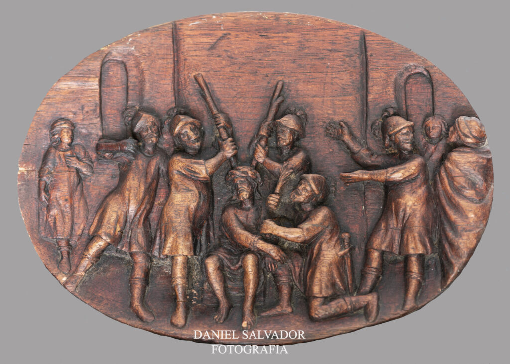 Relieve de la Coronación de espinas. Pedro Roldán. 1686. Hermandad del Santo Entierro. Parroquia de San Bartolomé. Carmona (Sevilla) Relieve de madera en su color 19,5/20×26/26,7 cm
