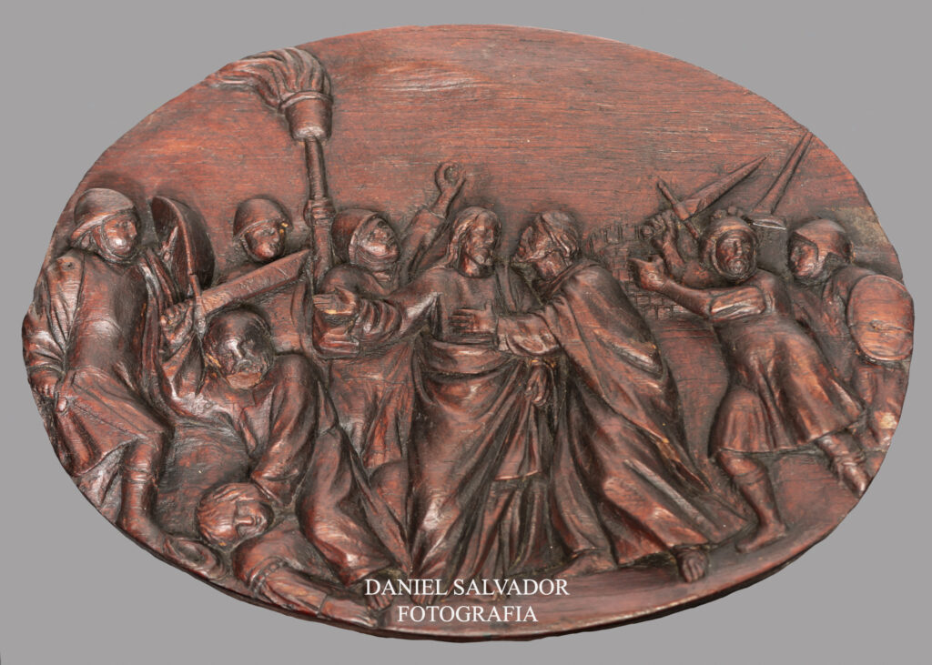 Relieve del Prendimiento. Pedro Roldán. 1686. Hermandad del Santo Entierro. Parroquia de San Bartolomé. Carmona (Sevilla) Relieve de madera en su color 19,5/20×26/26,7 cm