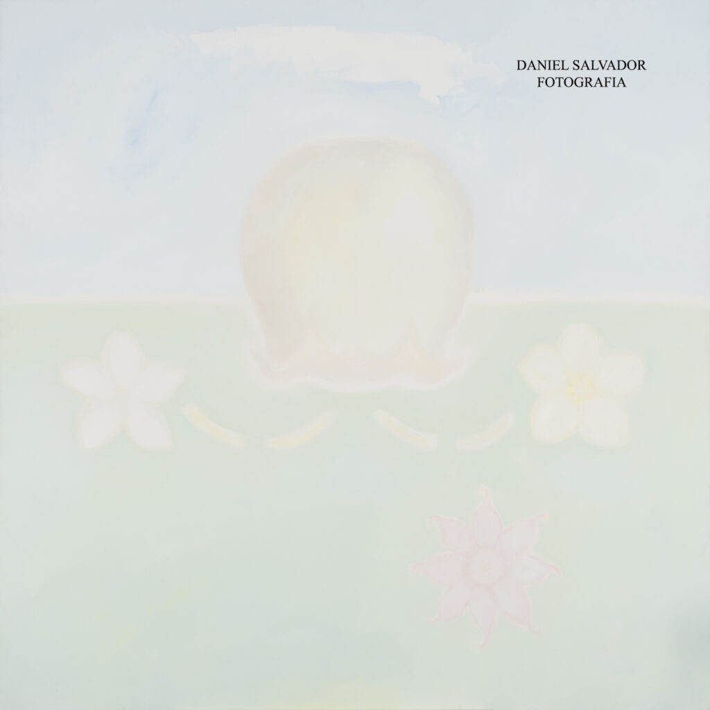 “El saco del hombre de las flores” Rosa Aguilar. 2022. Óleo sobre tabla. 120×120 cm Universidad Internacional de Andalucía