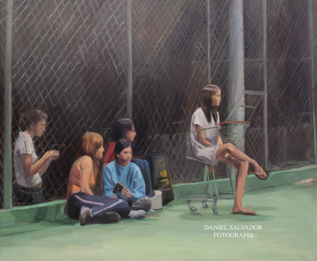 “Jóvenes en la cancha I” Salomé del Campo. 2011. óleo sobre lienzo. 120×146 cm Universidad Internacional de Andalucia