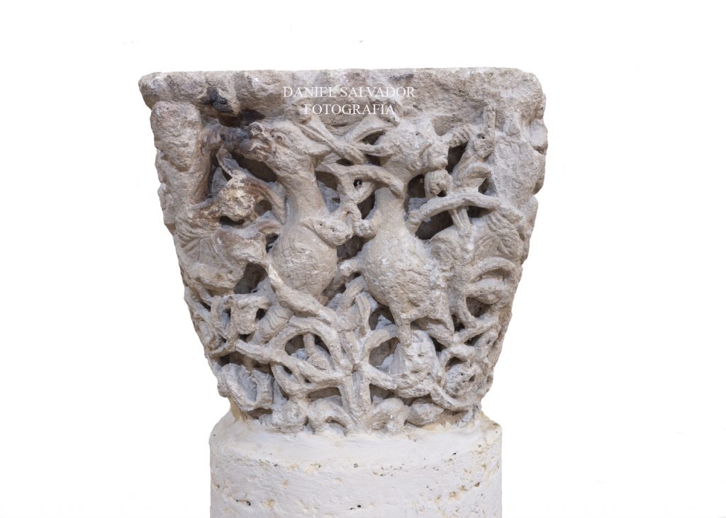 Capitel del paraíso. Anónimo. Taller silense. Último tercio del siglo XII. Iglesia parroquial de Santa Maria. Gumiel de Izán. Burgos. Piedra arenisca. 37 x37 x 7 cm