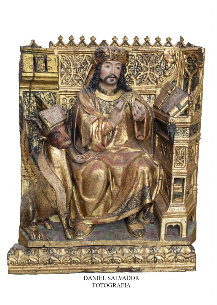 San Lucas. Entorno de Felipe Bigarny. Hacia 1510-1525. Retablo mayor. Iglesia parroquial de Santa Maria. Gumiel de Izán. Burgos. Madera policromada. 90 x 77 x 22 cm.