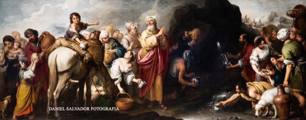 Moisés haciendo brotar el agua de la roca . Bartolomé Esteban Murillo. Hospital Santa Caridad. Sevilla