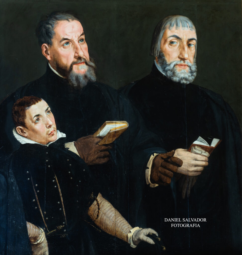 Don Diego Caballero, su hijo y su hermano Alonso. Retablo de la Purificación de la Virgen. Pedro de Campaña. 1.555. Capilla del Mariscal. Catedral de Sevilla