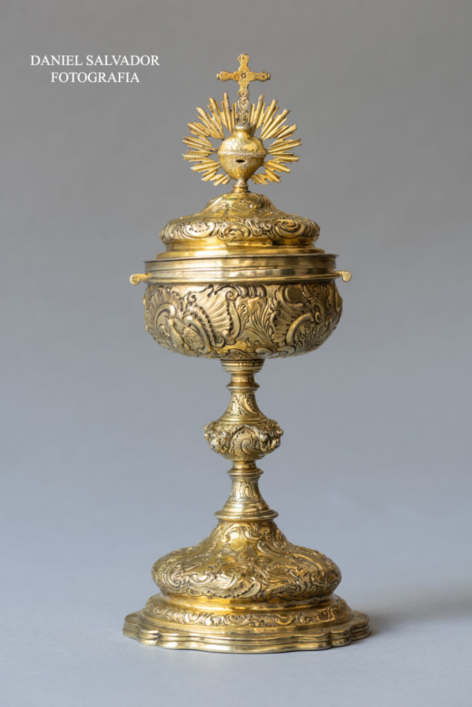 Copón. José Alexandre. Siglo XVIII. Plata cincelada. Monasterio de San Leandro de Sevill.a José Alexandre y Ezquerra (1722-1781) es uno de los plateros más representativos del periodo estético rococó en Sevilla. Oriundo de Zaragoza y establecido desde mediados de esta centuria en la capital andaluza, la calidad de sus diseños y su buen hacer lo …