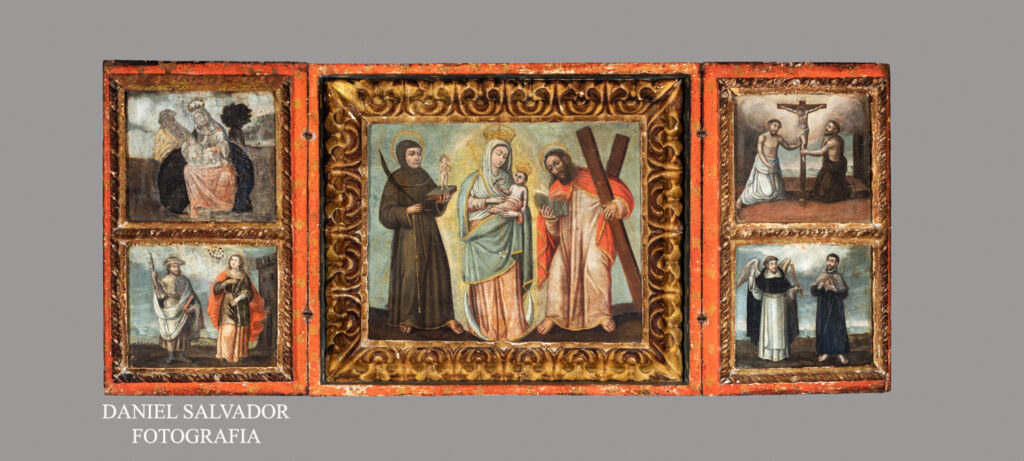 Tríptico de la Virgen de Chiquinquirá. Anónimo. S.XVII. Madera, pintura y cristal. 25×57,5×7 cm Autilla del Pino. Parroquia de la Asunción. Diócesis de Palencia.