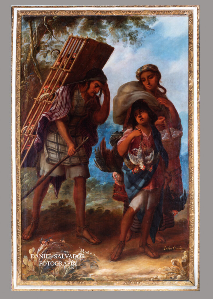 Indios otomíes. Atribuido a José de Ibarra. Guadalajara. México. h 1730. Óleo sobre lienzo 168×108 cm. Madrid. Colección Marqués de la Romana.