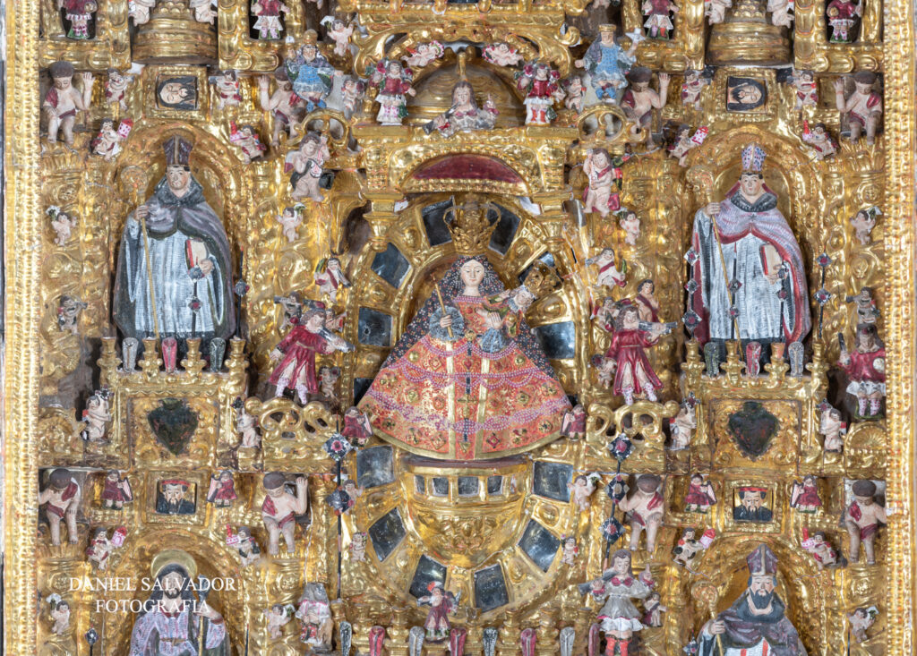 Obrador peruano. Retablo portátil de la Virgen de Copacabana. Mediados S.XVII. Plata labrada, madera y pasta policromada. 150 cm de altura aprox. Monasterio de Santa Elena (Clarisas). Nájera (La Rioja)