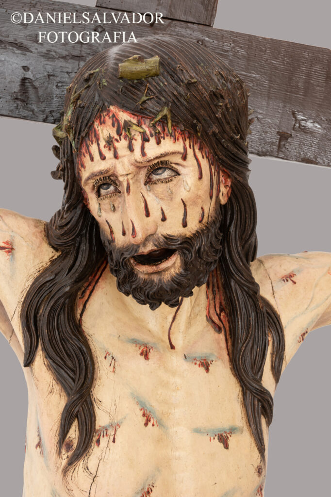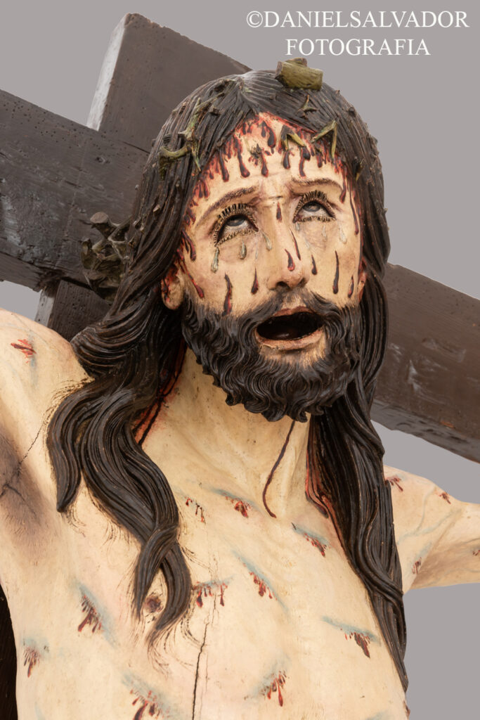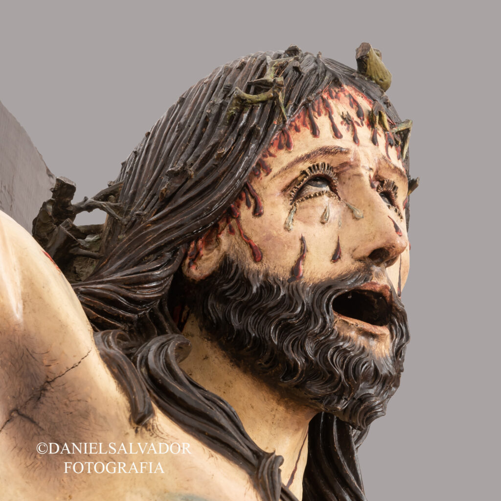 Detalle Cristo crucificado. Gil de Siloé. (h 1488-14920). Madera policromada. 200×160 cm Parroquia de San Ginés. Ciguñuela (Valladolid)