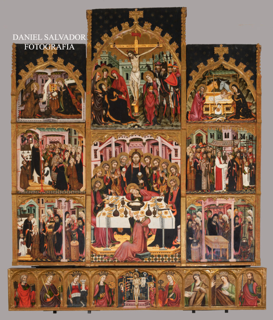 Retablo de la Eucaristía. Llorenc Saragossá? (1370-80). Temple sobre tabla. 255×234 cm. Iglesia parroquial de la Natividad de Nuestra Señora. Villahermosa del Río (Castellón)