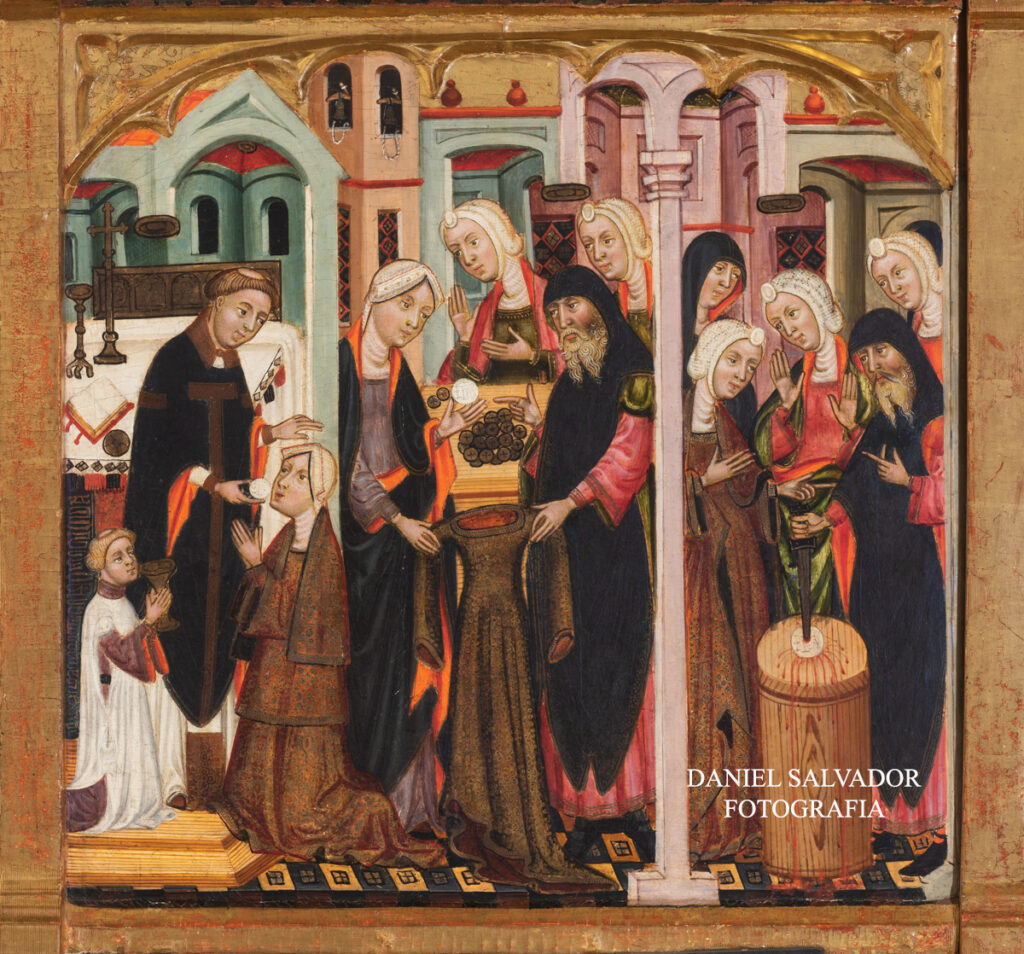 Detalle del retablo de la Eucaristía. Llorenc Saragossá? (1370-80). Temple sobre tabla. 255×234 cm. Iglesia parroquial de la Natividad de Nuestra Señora.