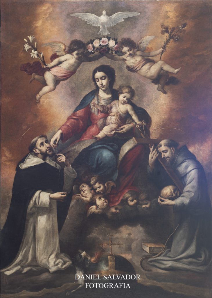 La Virgen del Rosario con Santo Domingo y San Francisco. Atribuido a Sebastián de Llanos Valdés. 1670 Origen: Hospital de las Cinco Llagas. Diputación de Sevilla